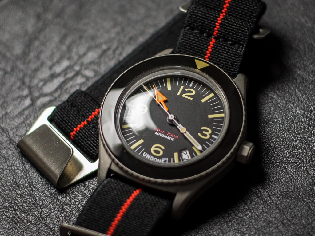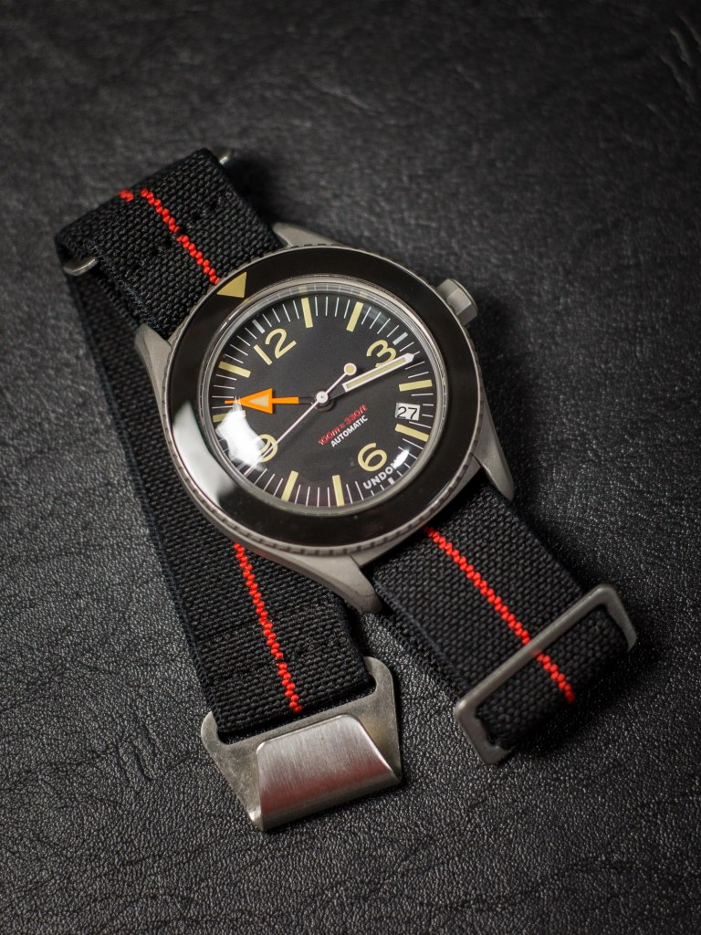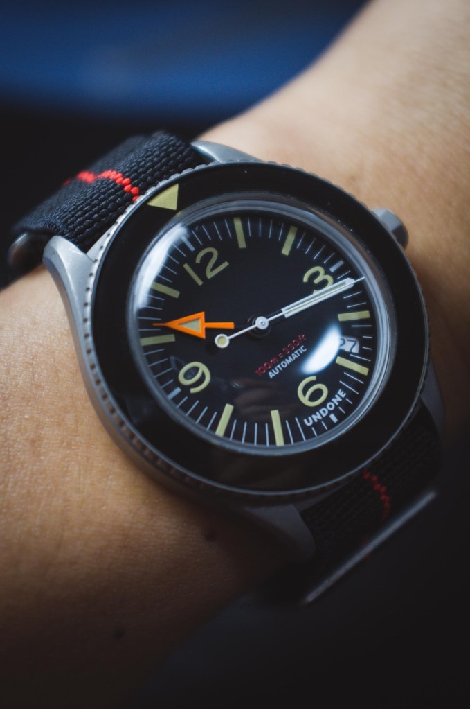 UNDONE allows you to choose from 6 different kinds of straps, each with its own set of colours. Most people seem to opt for their 5 ring-NATO, which goes along with that whole “field watch” look.