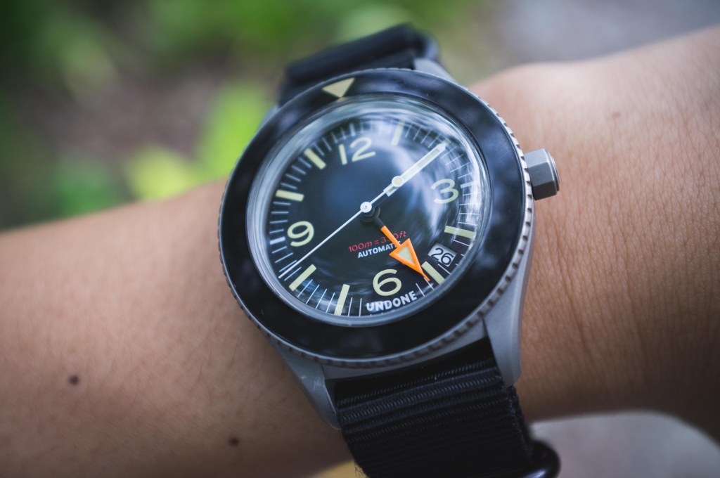 The case is made of 316L stainless steel and feels solid in hand, yet is light enough for comfortable, all-day wear. A signed crown at 3 o’clock is emblazoned with a “U”, clearly representing UNDONE. The crown has been cut into an octagonal shape to offer more grip during operation. These are nice little touches that other brands may not offer, even at higher prices (hint hint Seiko).
