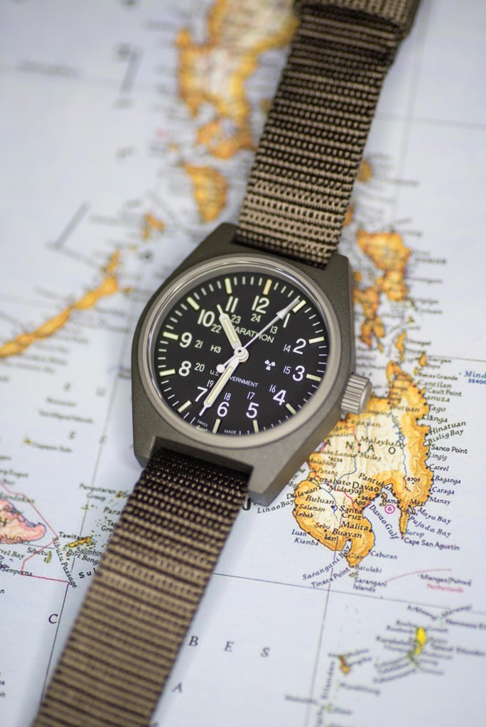 The field watch was birthed out of necessity on the battlefields, and its no wonder that utility is the name of its game. There’s no need for fancy gems, or shiny finishes – it’s all about delivering what you need, when you need it. The Marathon GPQ continues to be an accurate distillation of that spirit. It’s reliable, its robust and does everything you need. You don’t have to worry about accidentally scratching it or dropping it; it’s meant to take a beating and just keep going. Set it, forget it and get out there to live life.