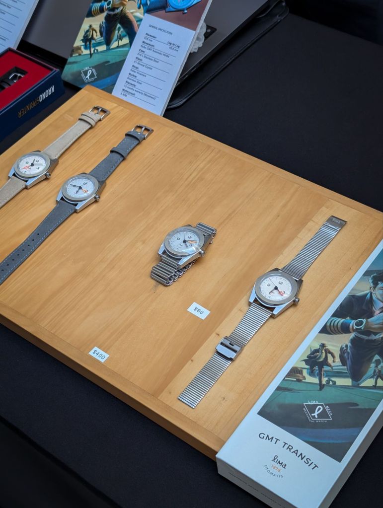After getting over the initial shock at the larger than expected crowd, I made it a point to drop by Lima Watch as my first stop, having recently purchased their GMT Transit that launched recently (the review will eventually go up on the site…once I wrestle some time from daily life). True to my expectation, the GMT transit was on display which gave me a chance to try on the other colours and bracelets. It’s a great watch with a unique case design expressing the brand’s design ethos.