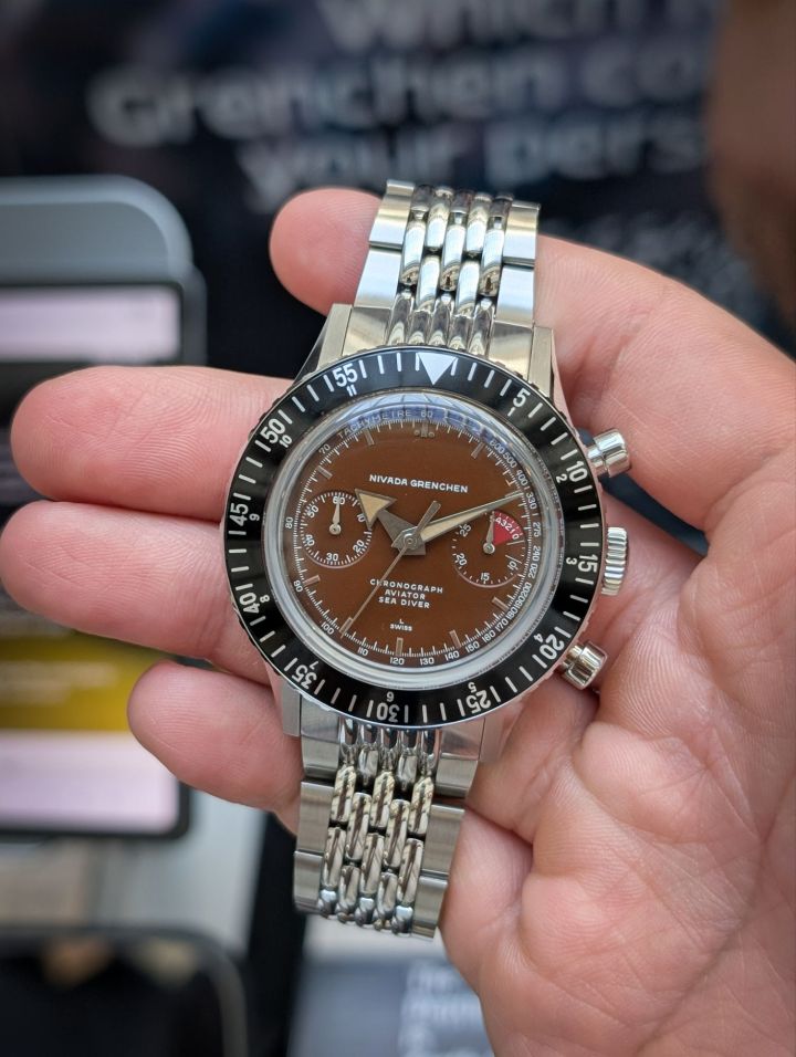 Next up and right beside Lima Watch was Nivada Grenchen. I’d heard a bit about this brand through the buzz its created online, with the brand in its modern form being a relatively faithful historical revival. I was always curious about what their watches were like, so I was excited to finally see and touch them in person.