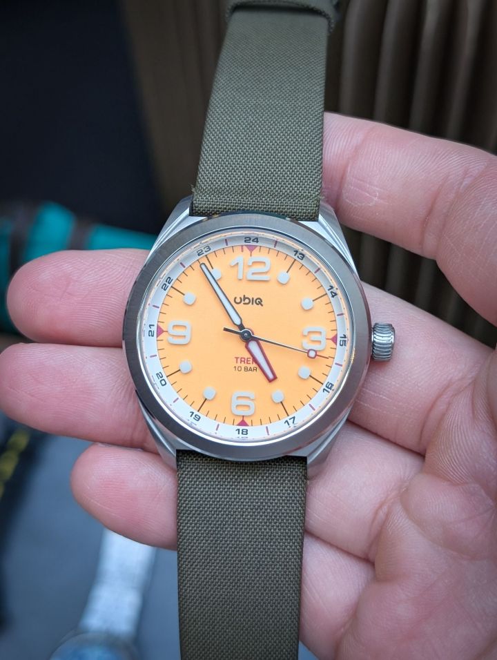 The other series was the newer Trek, which was Ubiq’s take on the field watch, featuring a lightweight but sturdy titanium case. The Trek maintains the same consistent design language and retains the same pops of colour seen in the Dual. Overall, both watches also feature nice detailing, such as in the crown and the case shapes.
